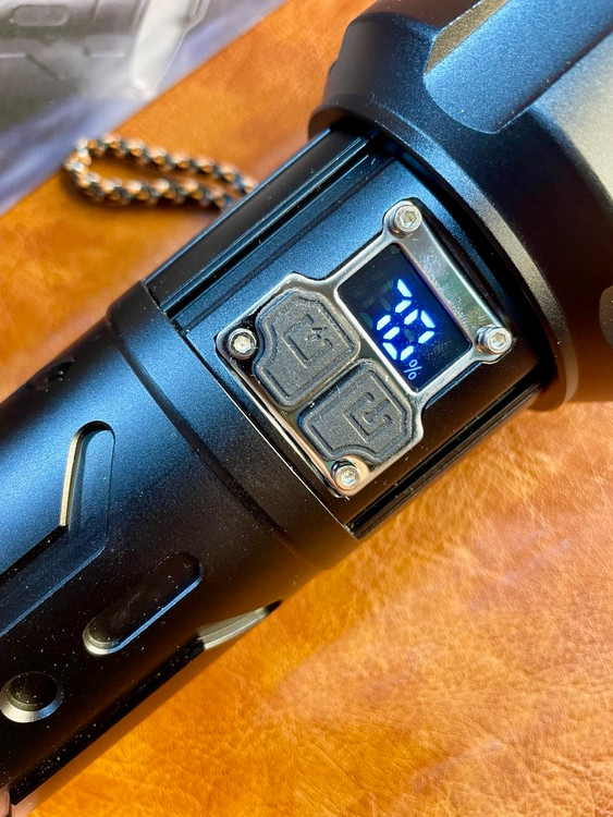این چراغ قوه از 4 عدد باتری 18650 لیتیوم یون با ظرفیت 2400 میلیآمپر ساعت استفاده میکند. این باتریها از طریق درگاه USB-C شارژ میشوند و شارژ اولیه آنها حدود 8 ساعت زمان میبرد. وجود نشانگر دیجیتال وضعیت شارژ نیز باعث میشود که همیشه از میزان باقیمانده باتری مطلع باشید. همچنین، یکی دیگر از مزایای این مدل، داشتن خروجی USB-A پاوربانک است که به کاربران این امکان را میدهد سایر دستگاههای الکترونیکی خود را نیز شارژ کنند.