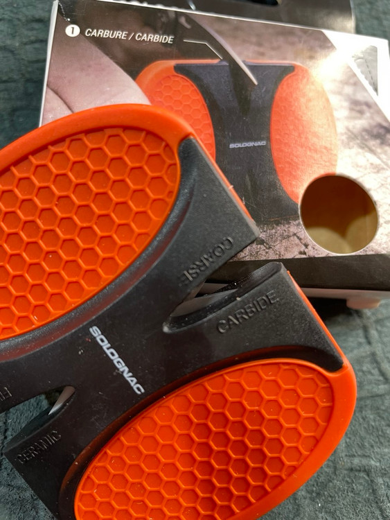 زاویه 20 درجه، یک طرف آن کاربید و طرف دیگر سرامیکی برای تیز کردن تیغه است