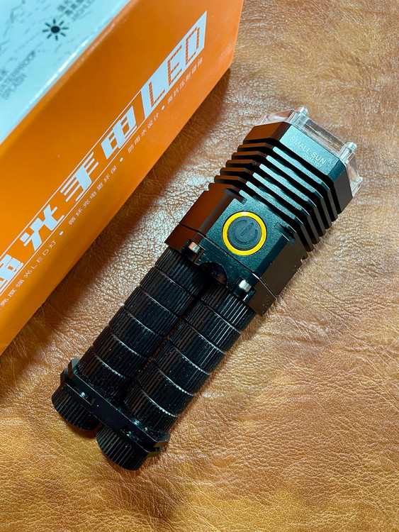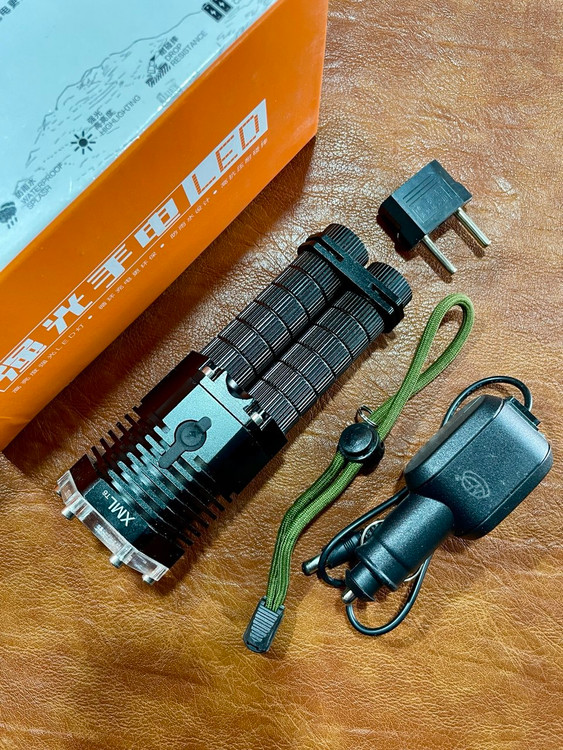 محتويات داخل بسته چراغ قوه پلیسی Small Sun T07, 2 عدد باتری لیتیوم یون 18650 با ظرفیت 2400 میلی آمپر, شارژر دو شاخ برق و فندکی ماشین